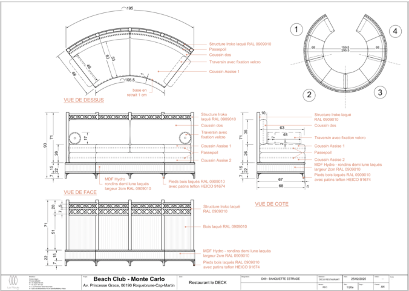 (Projet : banquette sur mesure pour le Monte Carlo Beach Hotel / Design : Dorothée Delaye)
